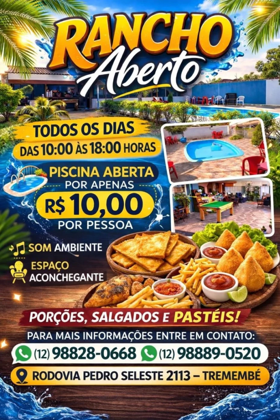 Mais do que matar a fome, o Rancho da Juh foi pensado para quem valoriza um local agradável, com atendimento voltado para famílias e uma proposta diferente das lanchonetes tradicionais. Se a sua intenção é encontrar um bar e restaurante com piscina em Tremembé/SP, esse é um endereço que merece atenção. É uma escolha prática para quem quer sair da rotina sem precisar ir longe.